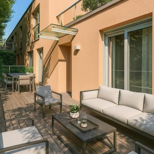 Terrasse privative de 30 m² entièrement refaite au printemps 2025 + jardin arboré de 89 m²