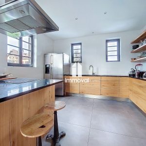 IMMOVAL vous propose à la Robertsau, rue de la Carpe Haute, une superbe maison de 167.57m² (195.90m² au sol) avec jardin et parkings, grand séjour avec cuisine tout équipée ouverte, 4 chambres, 2 salles d’eau, 3 wc, un sous-sol.
