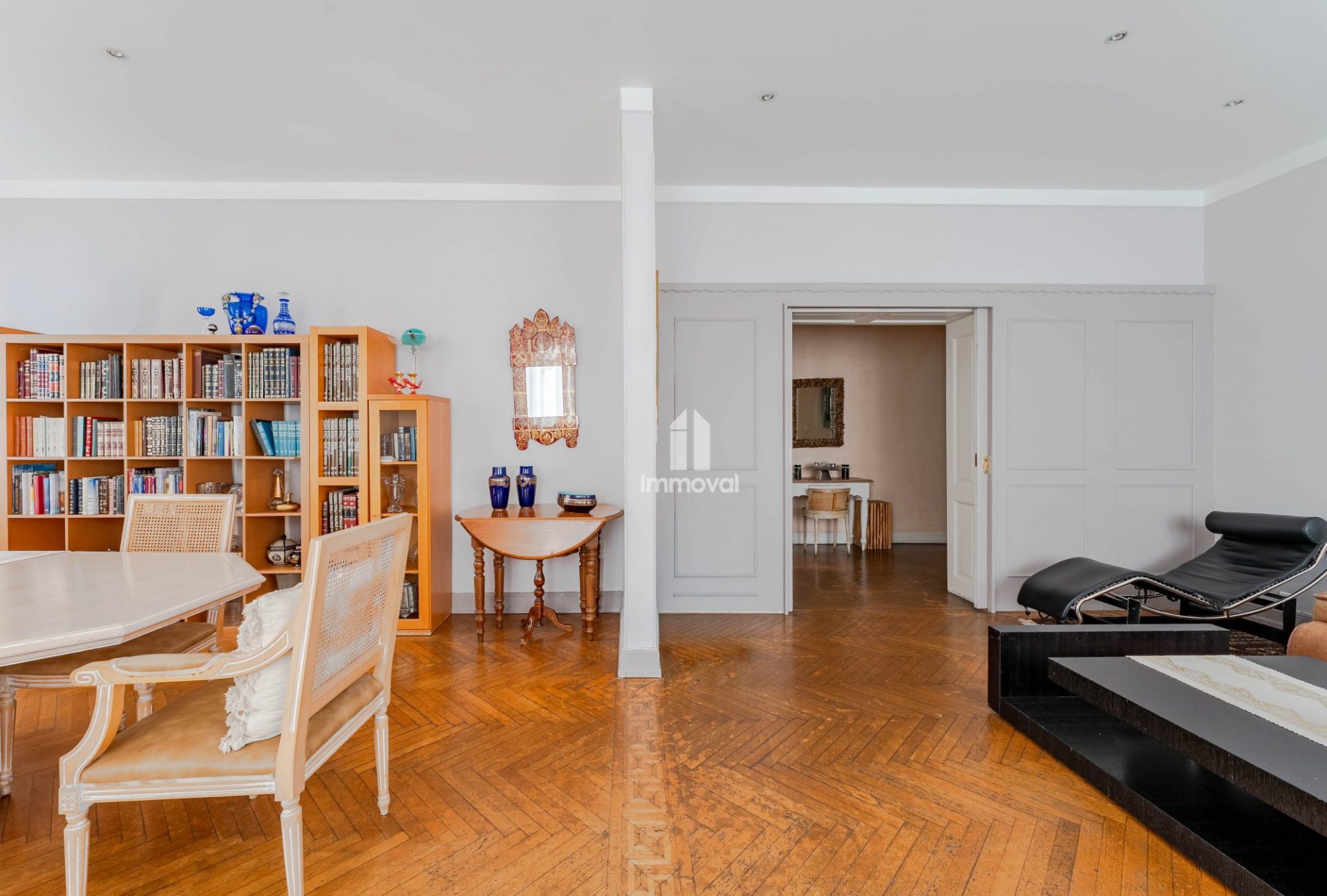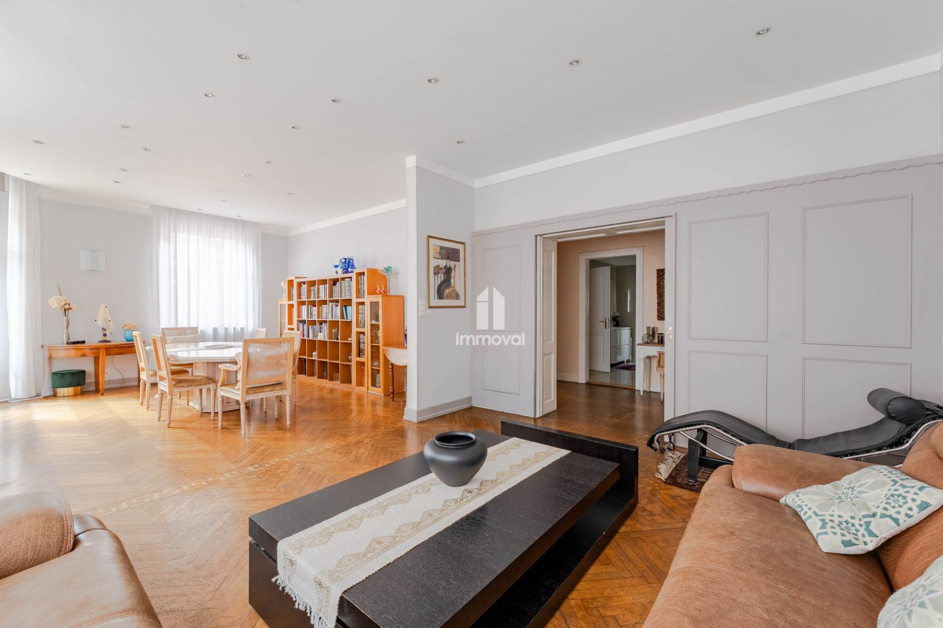 Une double pièce de réception de 45 m² avec accès à un second balcon