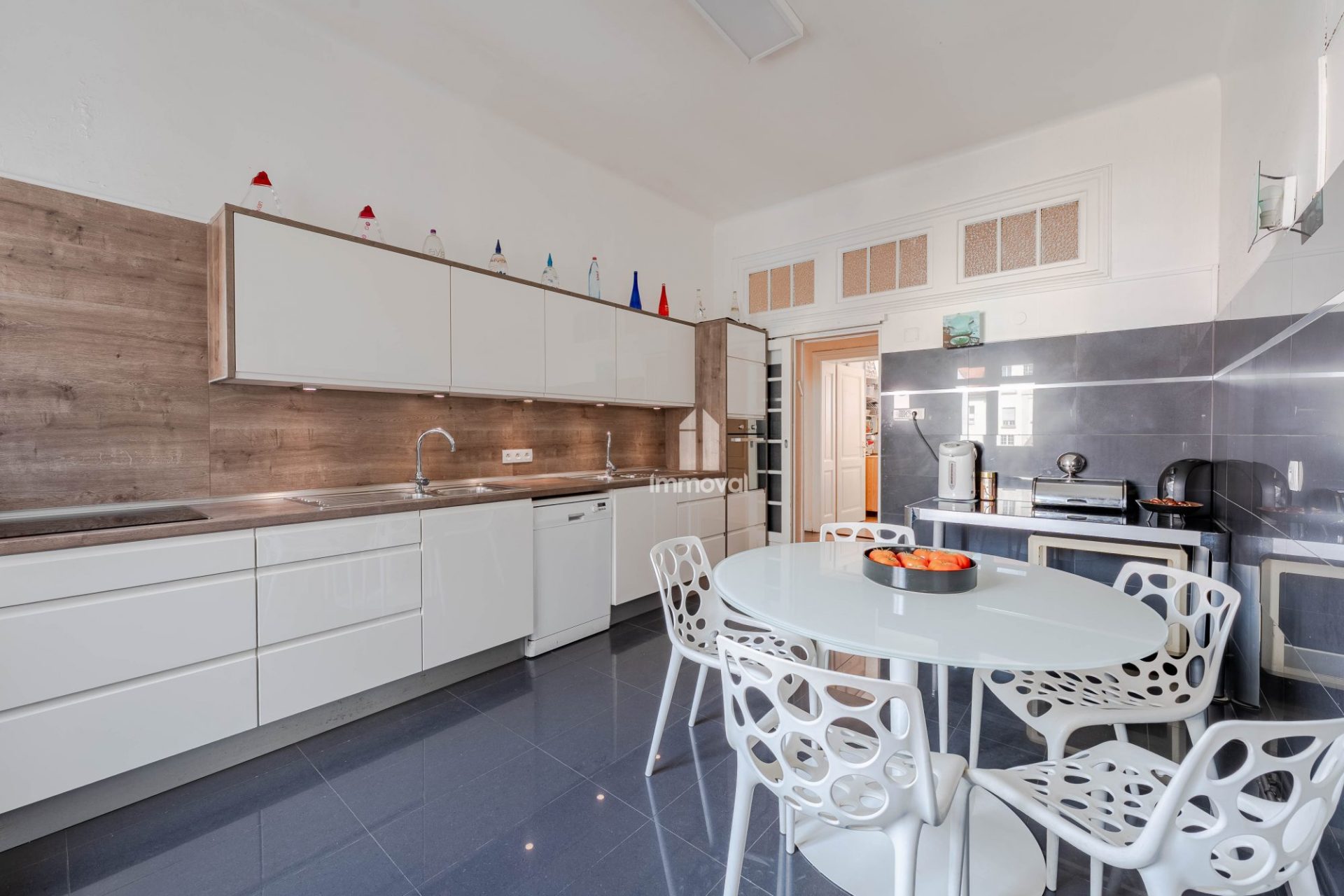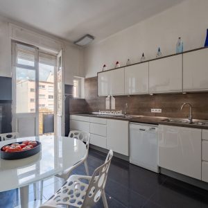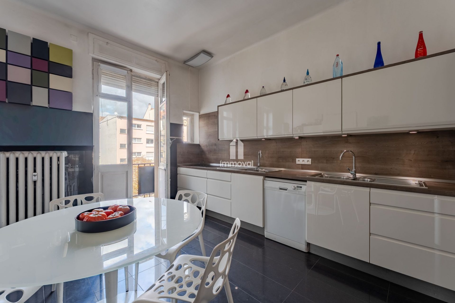 Une cuisine indépendante, meublée et équipée de 18 m² avec accès à un premier balcon